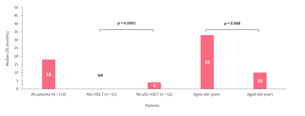 Allo-HSCT, allogeneic hematopoietic stem cell transplantation; NR, not reached OS, overall survival.