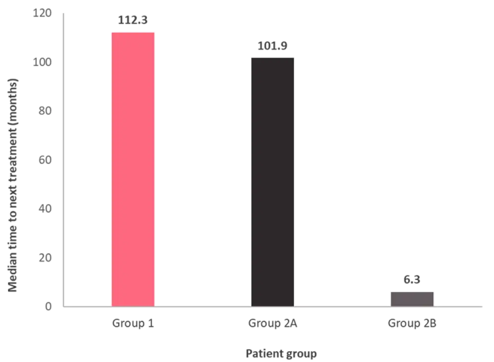 Time to next treatment was considered an important endpoint for the study. The median time for each patient group is shown in Figure 2.