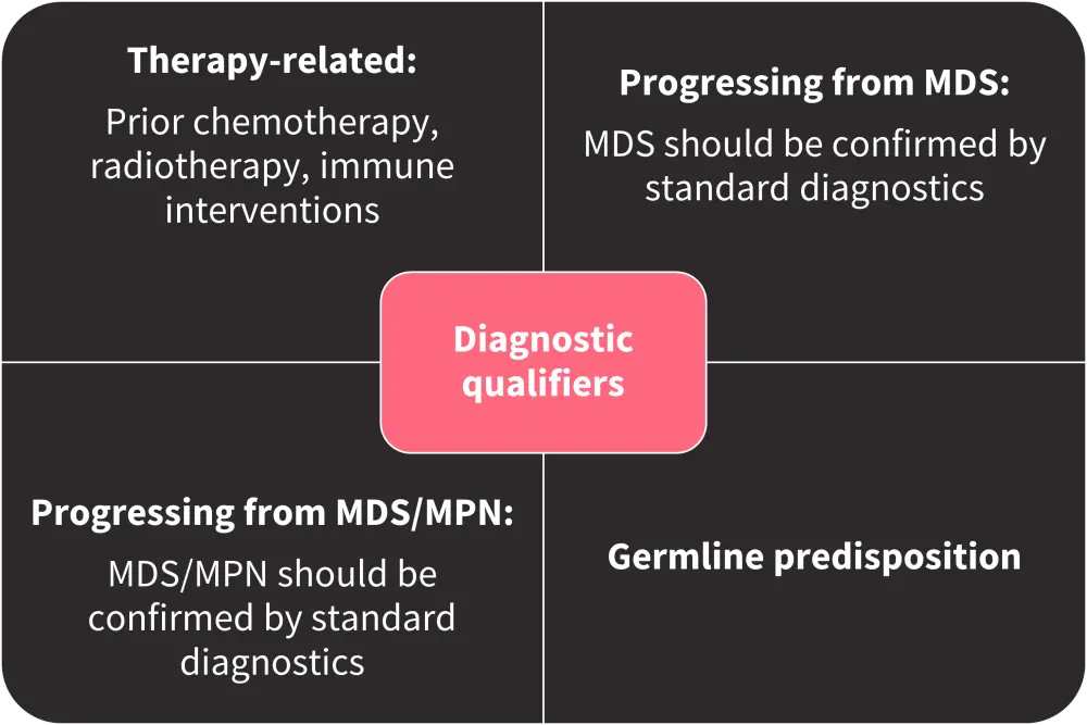 Figure 1. Diagnostic qualifiers following a specific MDS, AML, or MDS/AML diagnosis*