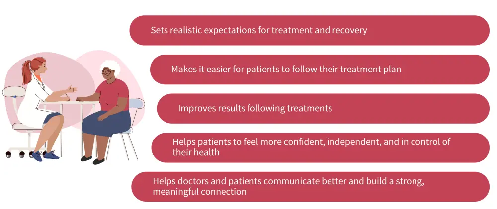Shared decision-making between physicians and patients is crucial to set realistic expectations for treatment and recovery, improve results following treatments, and help patients to feel more confident, independent, and in control of their health (Figure 2).