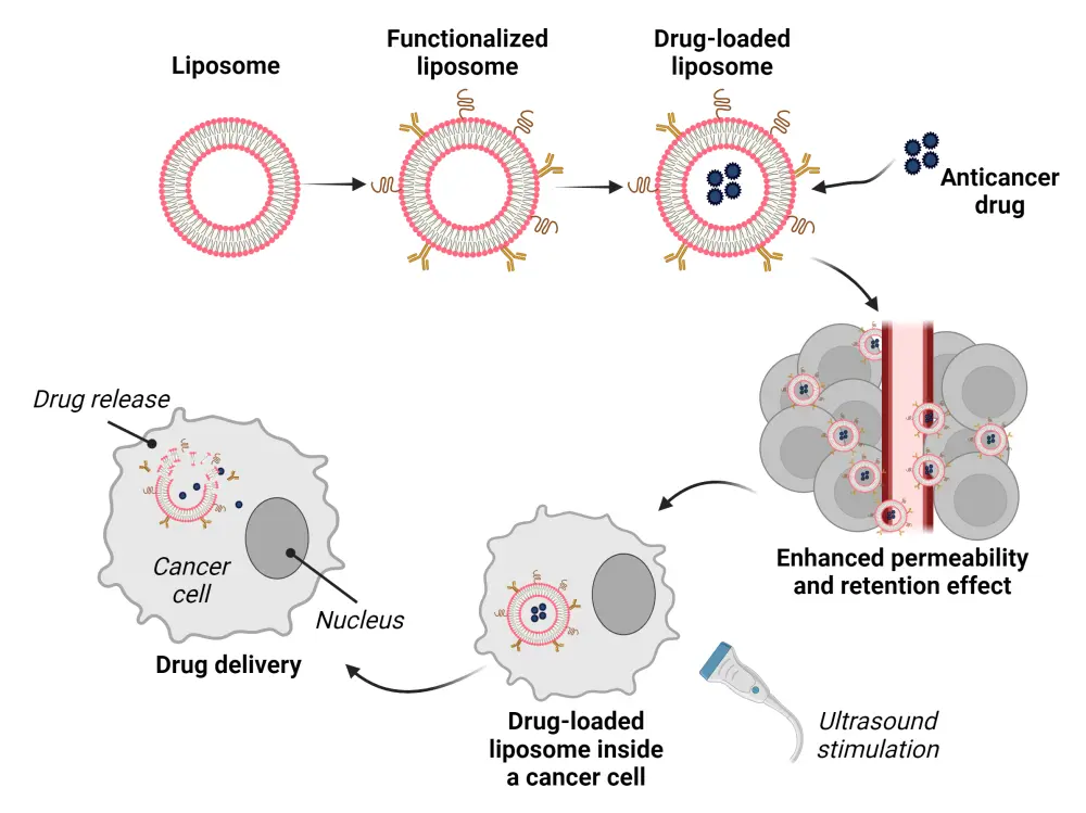 Figure 3 illustrates the mechanism of action of liposomal drug delivery systems. Liposomes can be functionalized using various methods, including antibodies, peptides, aptamers, proteins, small molecules, and hyaluronan, as shown in Figure 1, which can bind to specific receptors or antigens on leukemia cells and penetrate them. Liposomes can evade immune cell attacks by camouflaging plasma membranes from normal or leukemia cells, enhancing their uptake by leukemia cells through membrane fusion and increasing their targeting ability.1