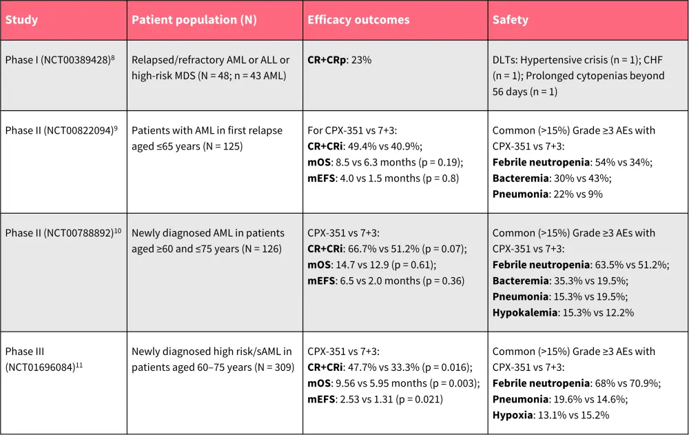 Table 1. Overview of clinical safety and efficacy of CPX-351 in AML*