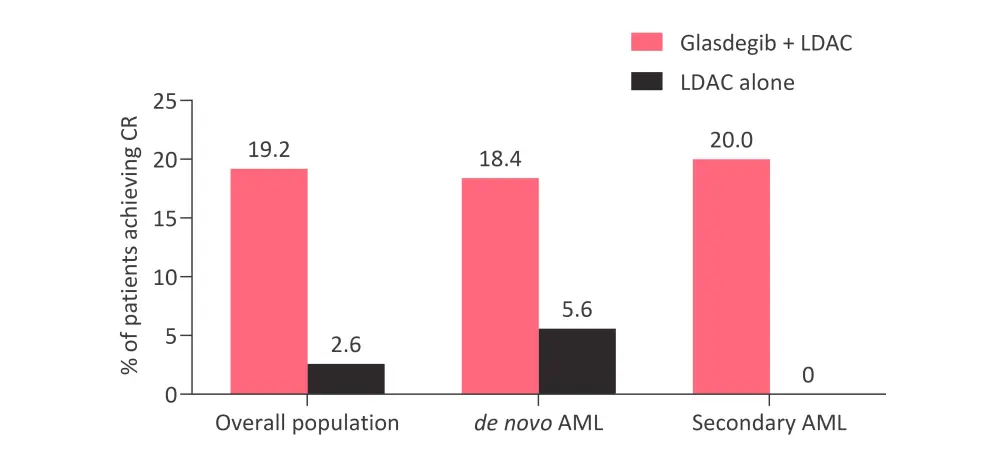 The phase II BRIGHT AML 1003 trial (NCT01546038) aimed to evaluate the effect of using glasdegib, a potent, selective oral inhibitor of the Hedgehog signaling pathway, in combination with LDAC for the treatment of patients with AML who were ineligible for intensive chemotherapy. Indeed, this combination has already been approved in the newly diagnosed patient population in the US and Europe based on the results from this trial. The updated (>40-month) analysis from this trial was recently published by Michael Heuser and colleagues in the Annals of Hematology journal, and is summarized below.1