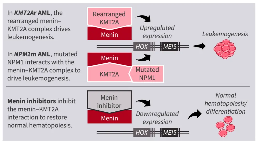 Figure 1. Rationale for menin inhibition in AML, and mechanism of action1,2
