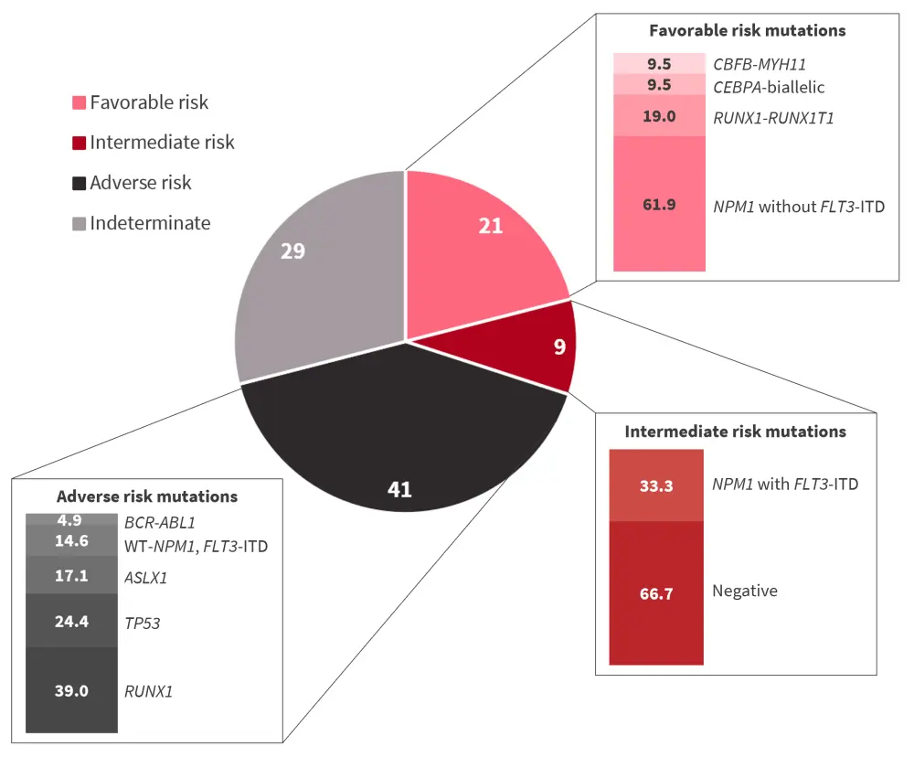 Data obtained through NGS were used to stratify patients according to the European LeukemiaNet (ELN) 2017 risk stratification guidelines (Figure 1).