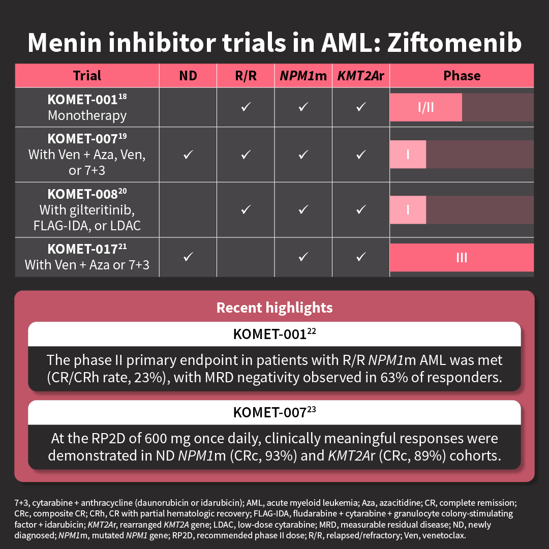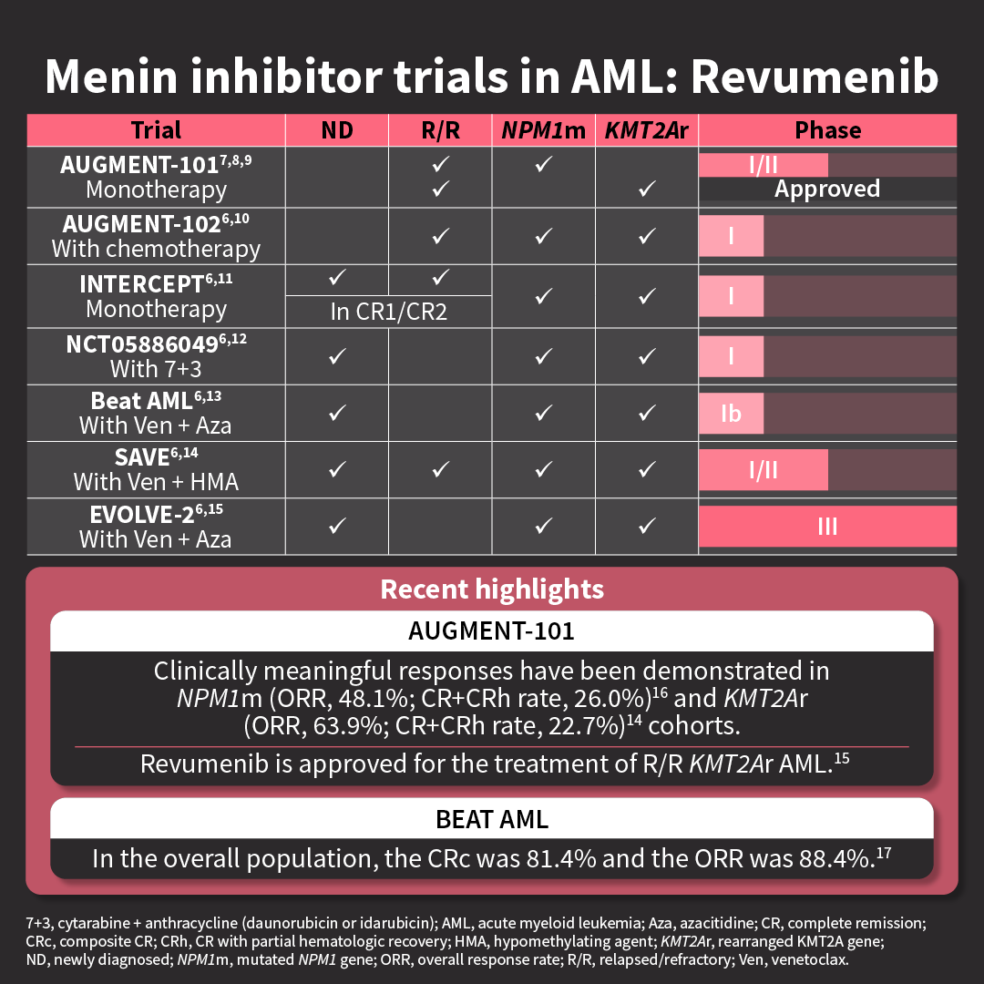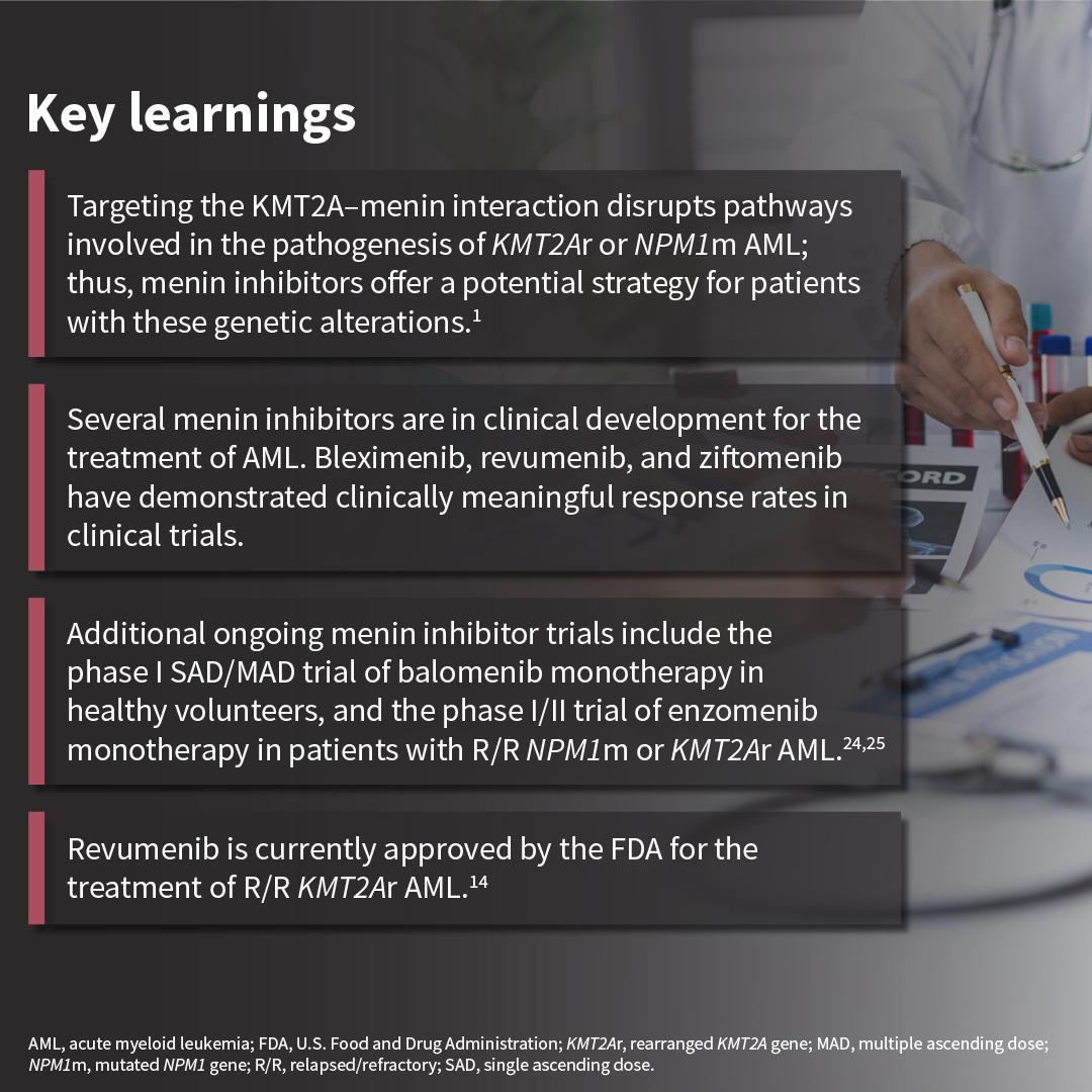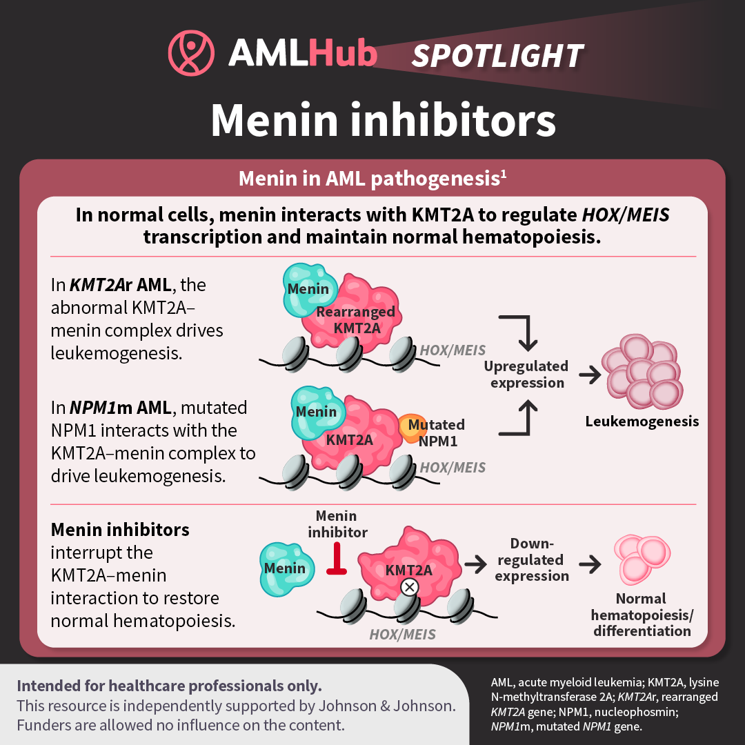 AML Hub spotlight: We explore the role of menin in acute myeloid leukemia pathogenesis and review the latest clinical trial data of menin inhibitors, which demonstrate clinically meaningful responses in acute myeloid leukemia.