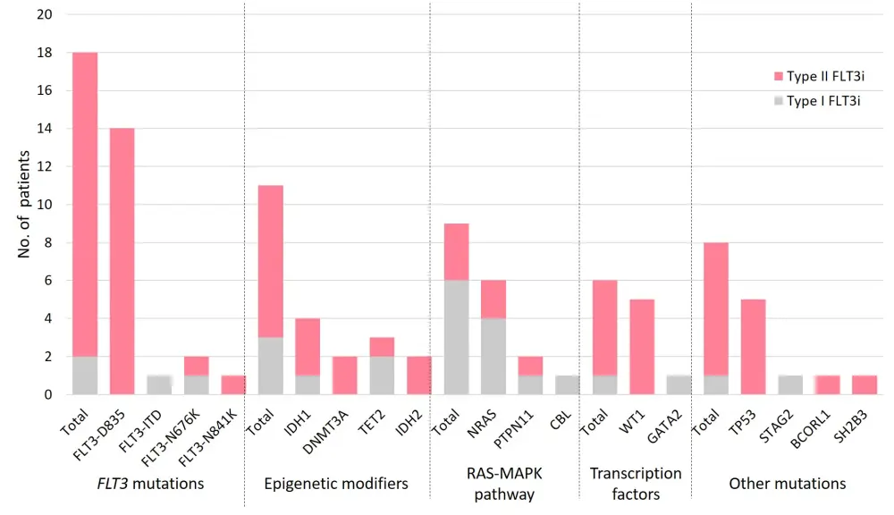 Figure 1. Emergent mutations in the secondary resistance cohort in patients treated with type I/II FLT3 inhibitors (FLT3i)2