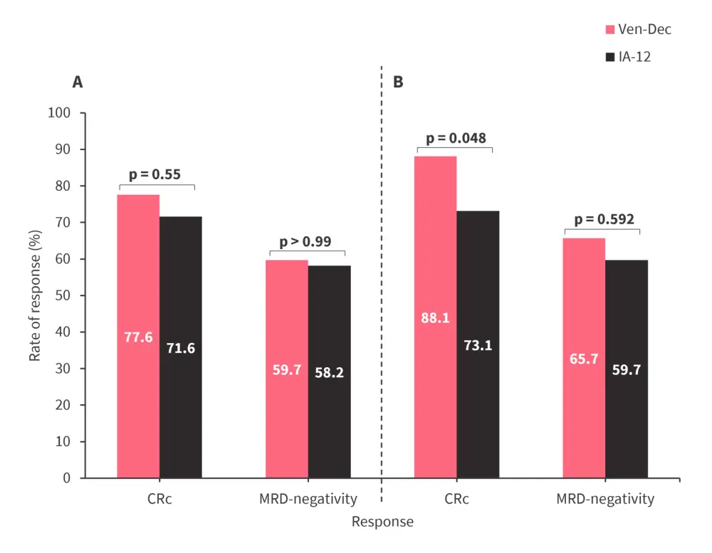 CRc, composite complete remission; IA-12, idarubicin and cytarabine; MRD, measurable residual disease; Ven-Dec, venetoclax and decitabine.
