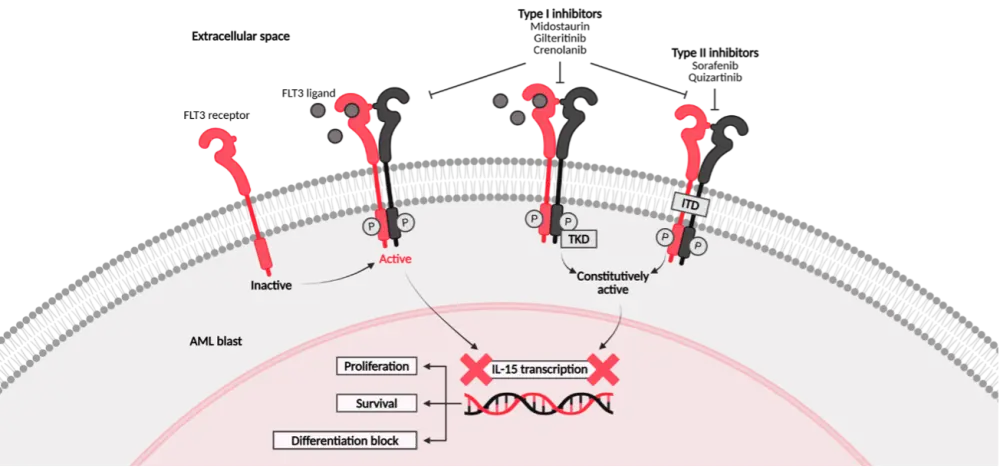 Figure 1. Mechanism of action of Type I and Type II FLT3 inhibitors1